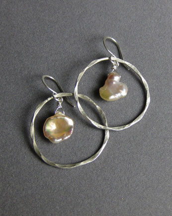 These simple hoops feature a natural-color cultured freshwater pearl.